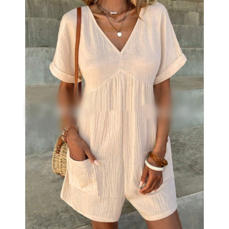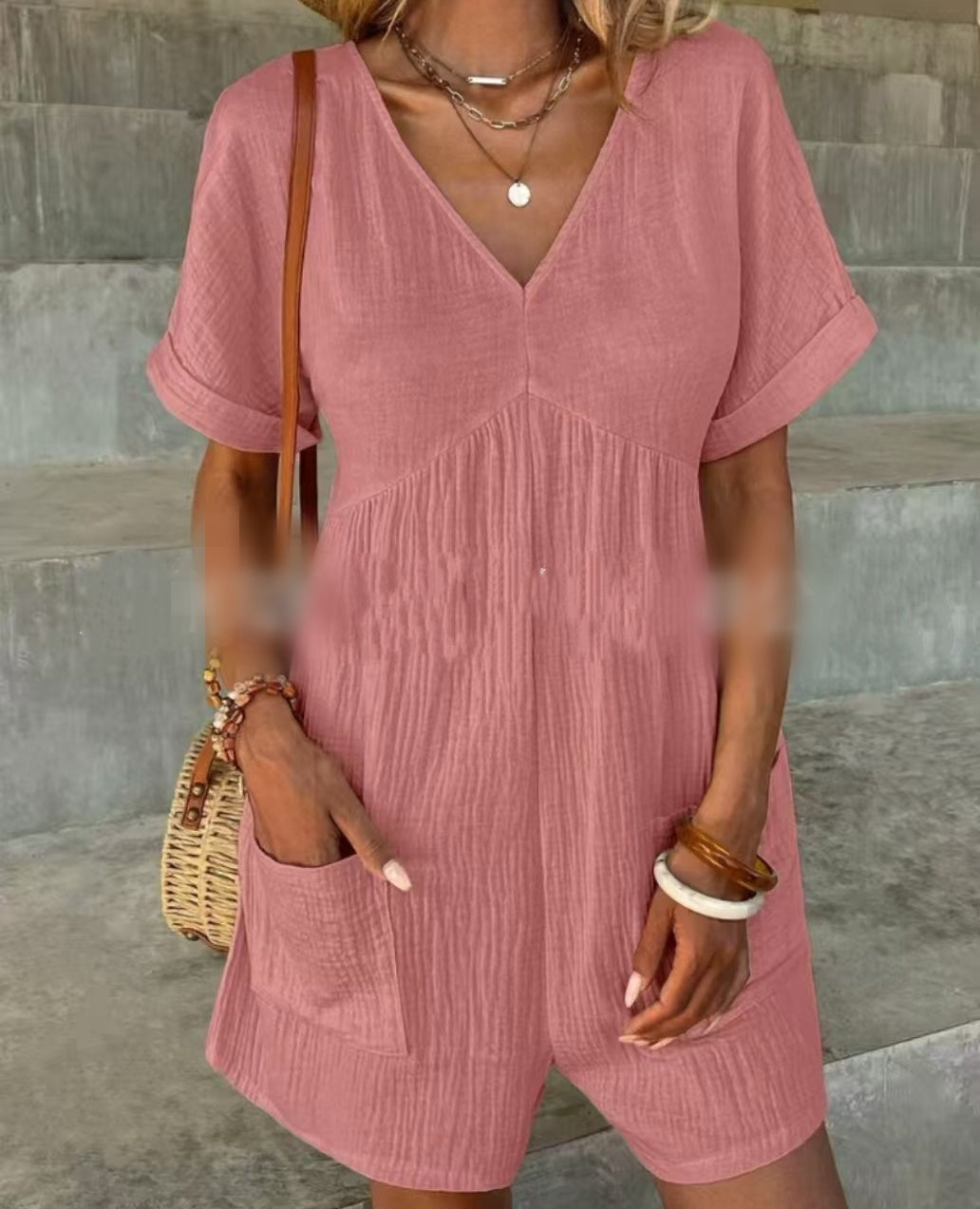 Pachetul include: 1* Salopetă scurtă elegantă pentru femei cu decolteu în V