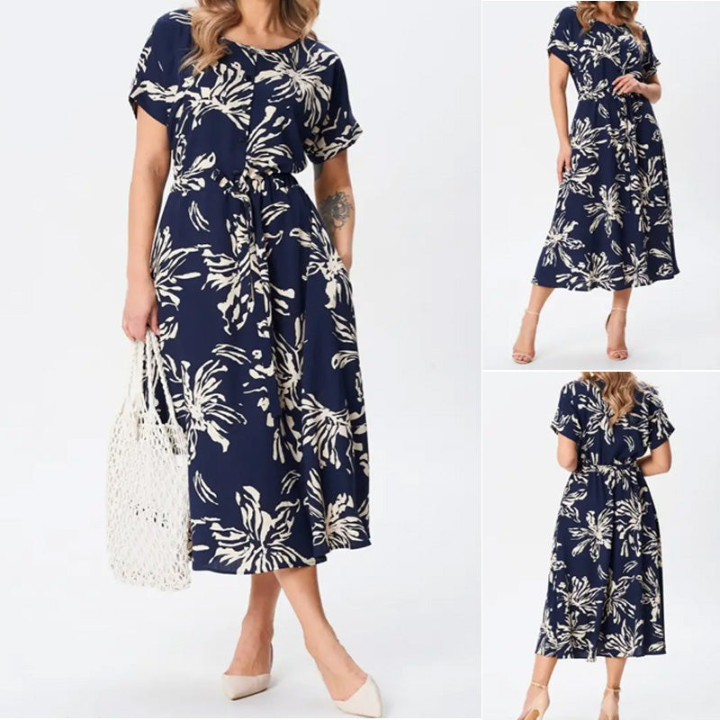 Fabricată din poliester moale și fluid, rochia se mișcă grațios odată cu tine. Mânecuțele scurte oferă acoperire fără a supraîncălzi – perfectă pentru zilele călduroase.