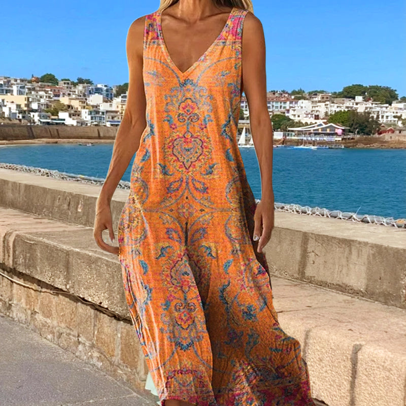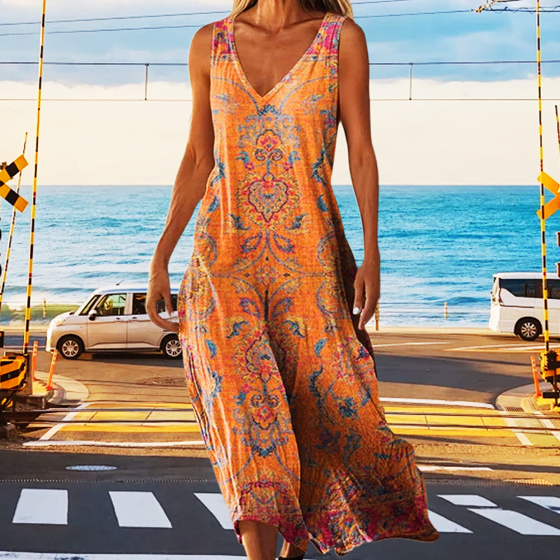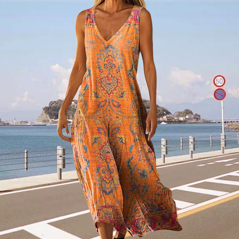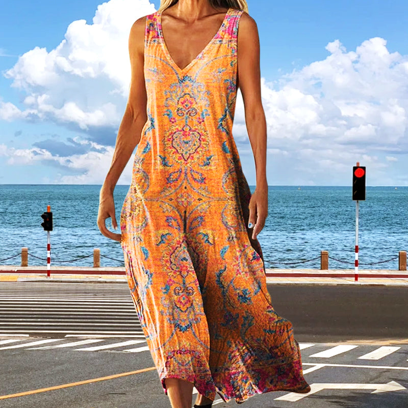 IMPRIMEURI ARTISTICE INSPIRATE DE VACANȚĂ - Featuring imprimeu vibrant, această rochie emană o atmosferă artistică și de vacanță, adăugând interes vizual în timp ce fiind suficient de versatilă pentru a se potrivi cu diverse stiluri.