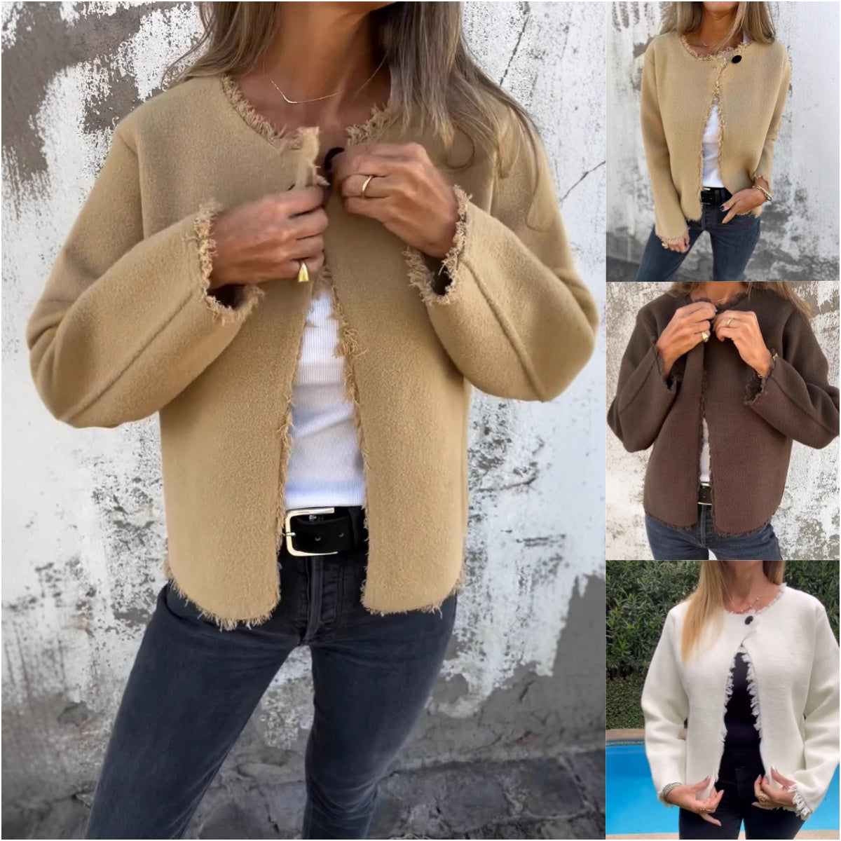 Marginile decupate conferă un aspect modern: această jachetă este concepută cu margini decupate la mâneci, guler și deschidere, oferind un detaliu elegant și texturat care îi sporește aspectul casual, dar stilat, pentru orice ocazie.