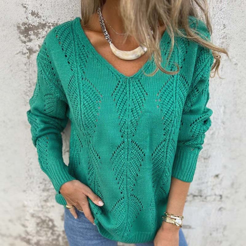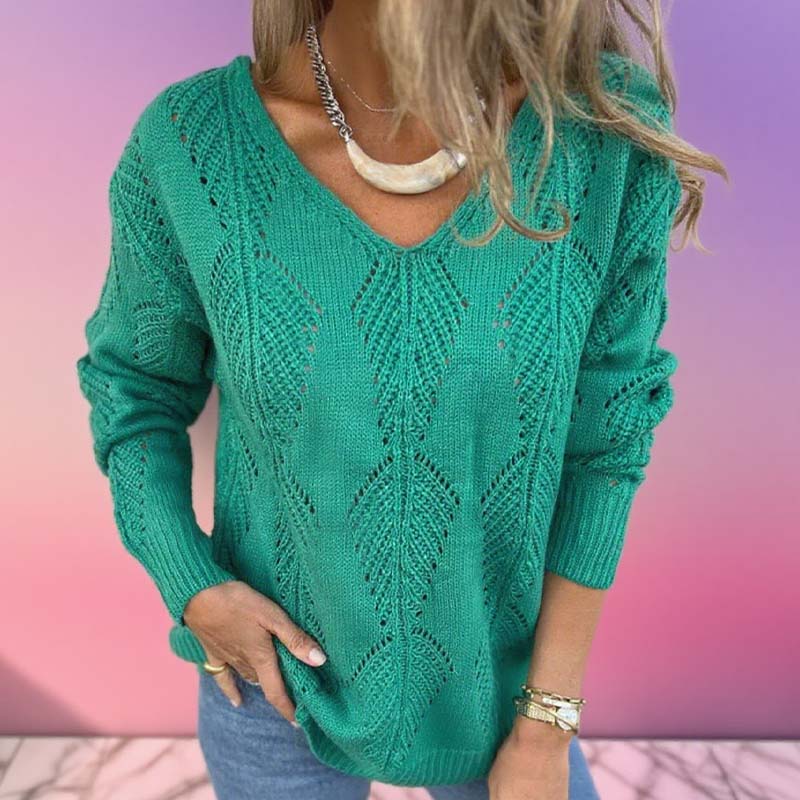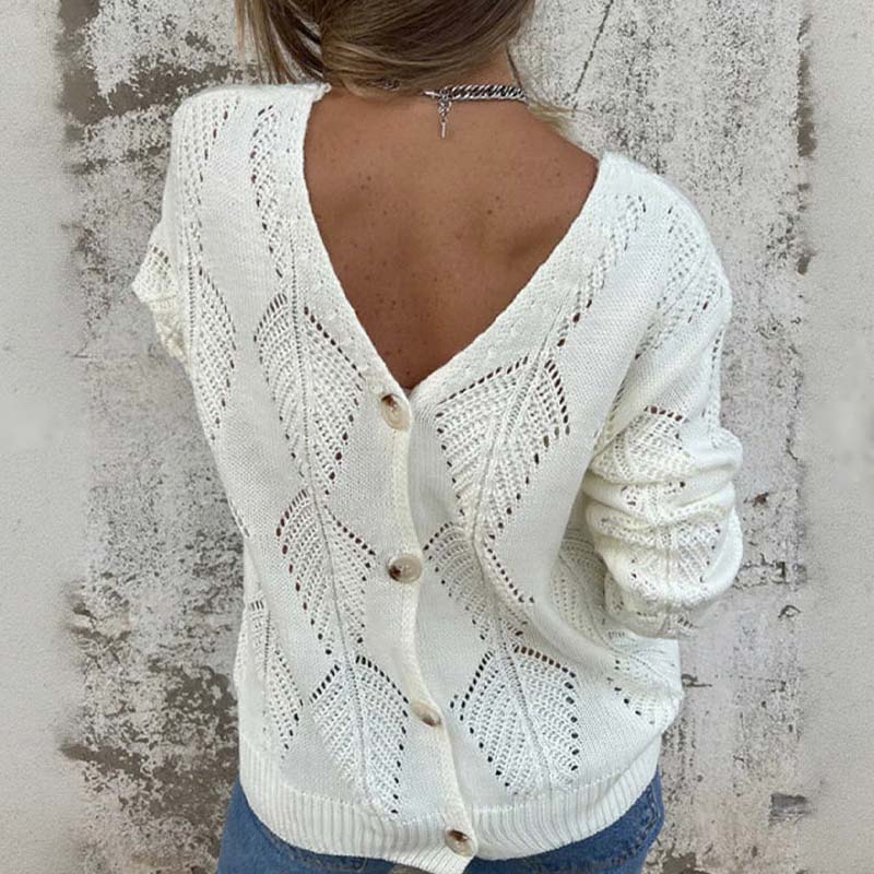DECOLTEU ÎN V CU FINISAJE PERFECTE - Decolteul în V flatant este completat de un design delicat al nasturilor, care subliniază aspectul rafinat al puloverului. Această combinație oferă atât un farmec casual, cât și o notă de sofisticare, ceea ce îl face ideal pentru a fi purtat cu coliere sau ca piesă independentă.