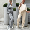 DESIGN SPORTIV CU DUNGI LATERAL: Acest set are dungi laterale contrastante, care conferă un aspect sportiv și casual și sporesc flexibilitatea mișcărilor, adăugând o notă de stil ținutelor casual de zi cu zi.