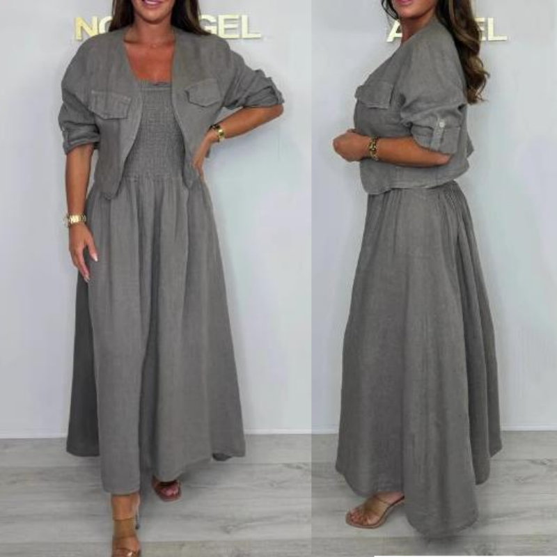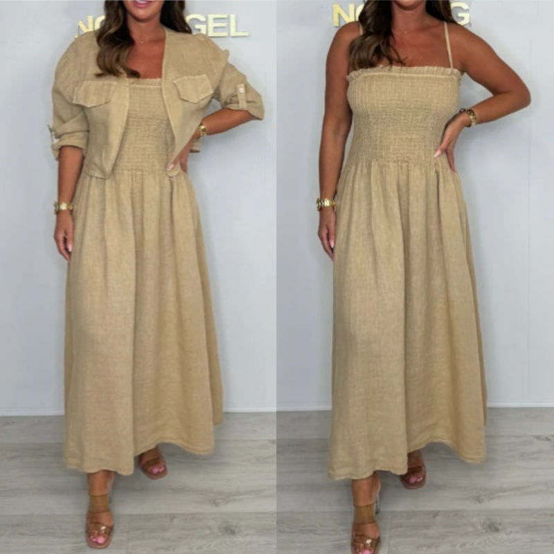 Stiluri versatile mix-and-meci-creați mai multe aspecte cu acest set coordonat care funcționează împreună sau separat. Jacheta scurtă strate perfect peste rochia cu curea de spaghete, în timp ce fiecare piesă se împerechează fără efort cu garderoba existentă pentru combinații maxime de ținute.
