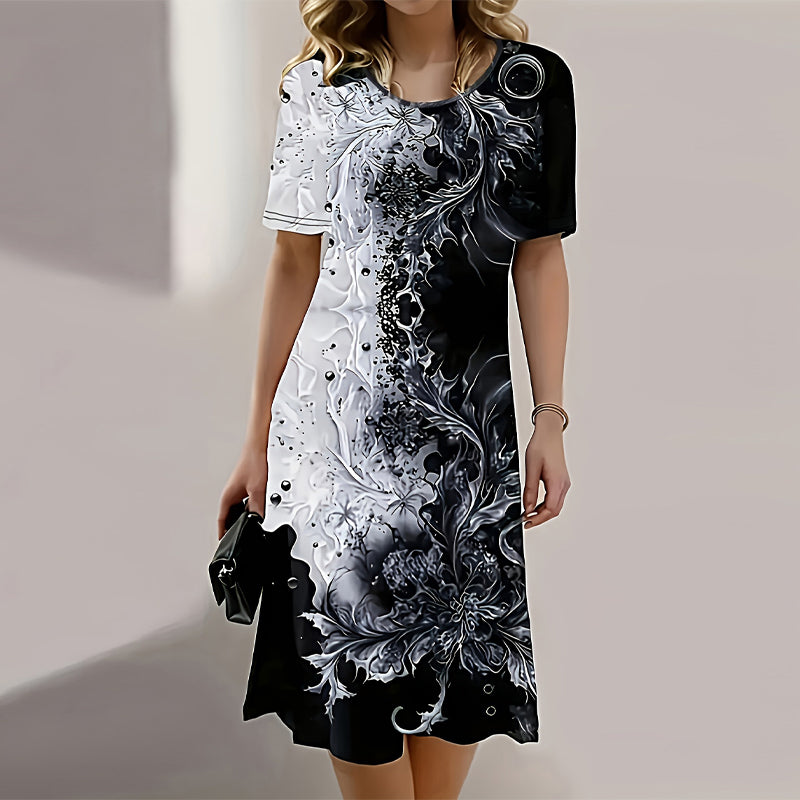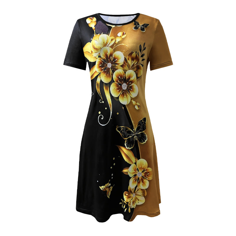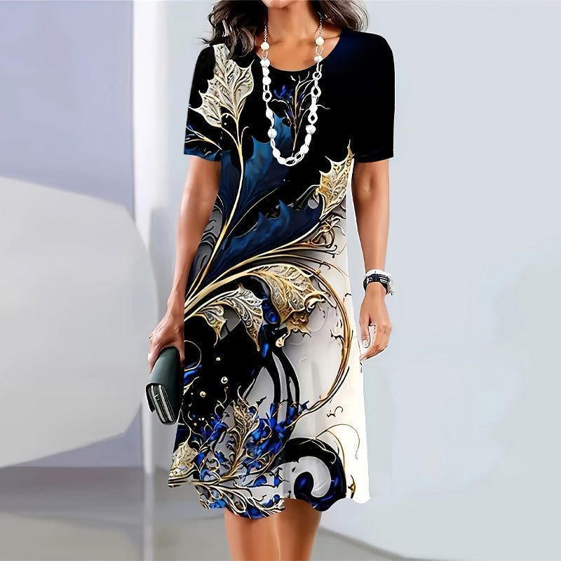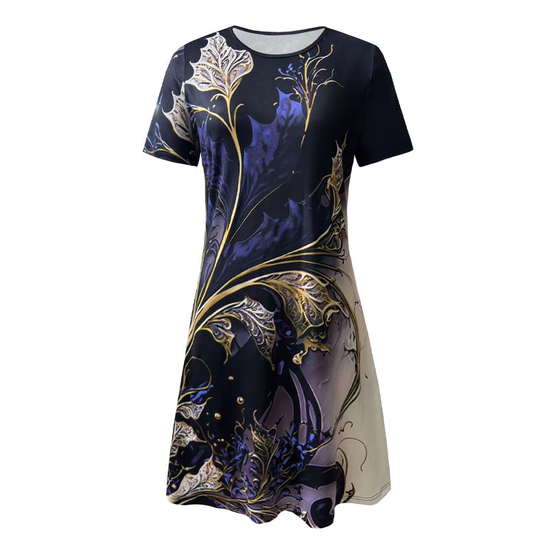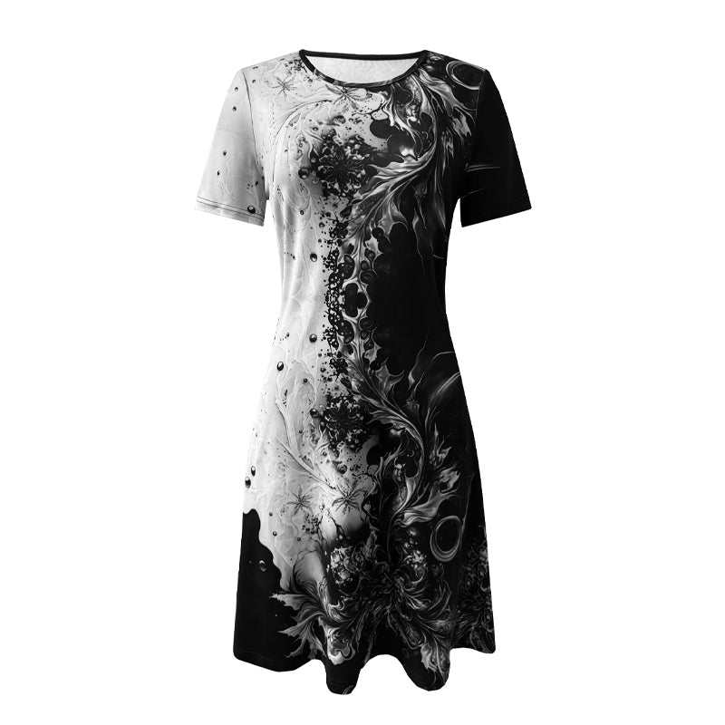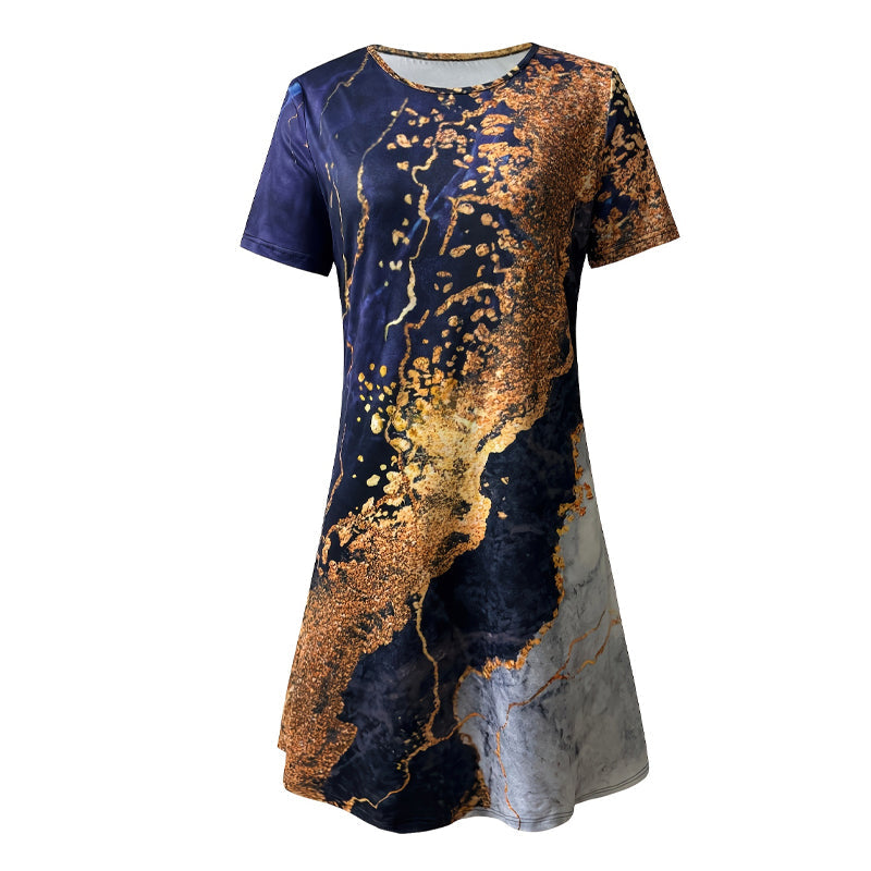Pachetul include: 1 1 * rochie casual pentru femei cu gât rotund imprimat