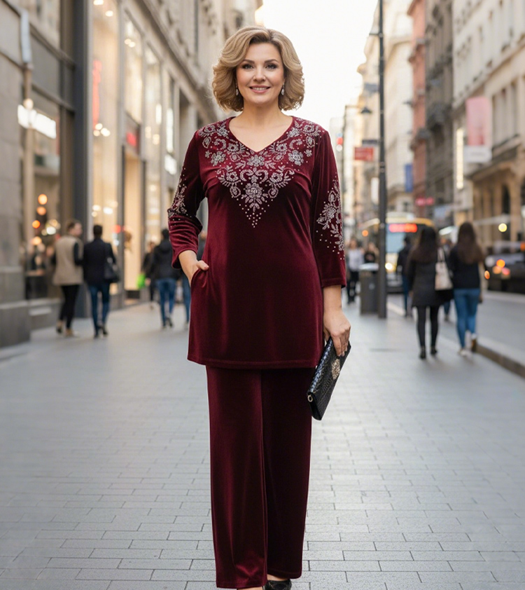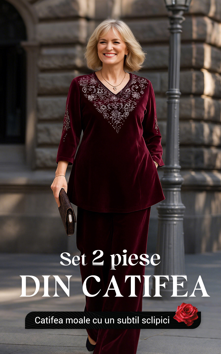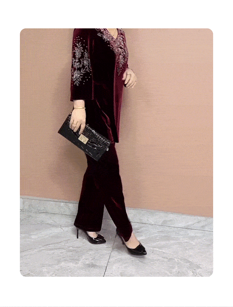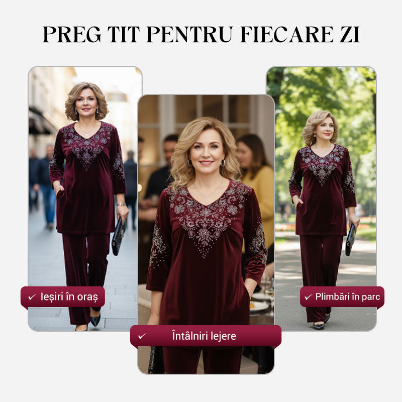 💞Set top și pantaloni din catifea cu strasuri pentru femei